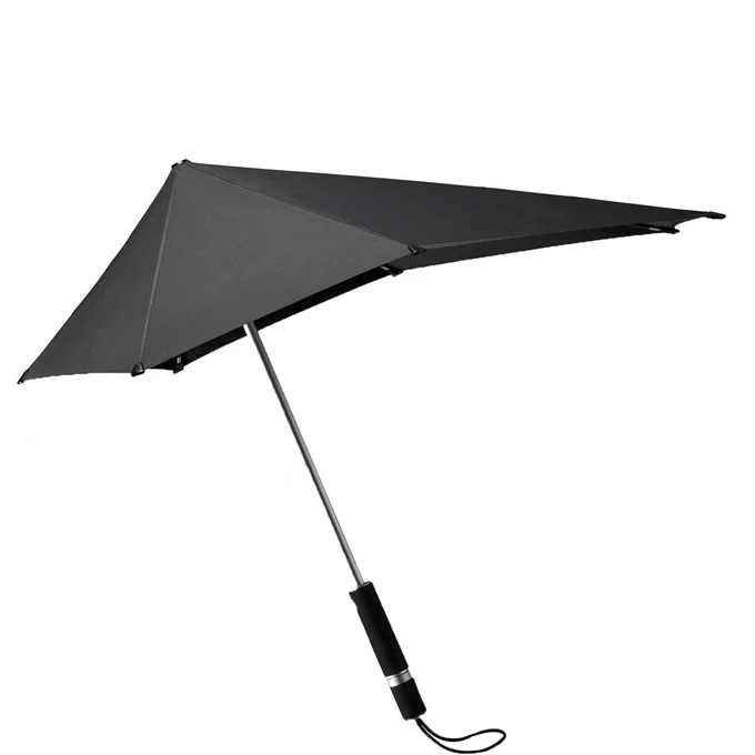 De Senz Original Storm Paraplu is op vele onderdelen anders is dan een gewone paraplu. De paraplu vindt door zijn aerodynamische vorm en ovale staf zelf de ideale positie in de wind. Daarnaast zorgt de unieke vorm altijd en overal voor een uitstekend zicht. Dankzij het slimme ontwerp klapt de paraplu niet om bij windstoten tot 100 km/u. Ook is de paraplu voorzien van eyesavers, dit zijn brede kunststof dopjes op de punten van de paraplu. Het openingsmechanisme zit geรฏntegreerd in het ergonomische handvat. Is de regenbui voorbij? Draag de paraplu comfortabel mee in de sleeve met schouderriem.